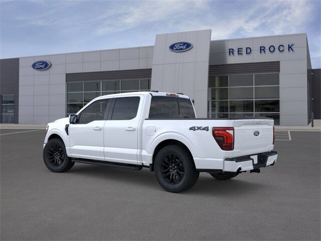 $7,252 off MSRP! 2025 Ford F-150 Lariat 4D SuperCrew 5.0L V8 4WD Star White Metallic Tri-Coat Navigation System, Backup Camera, Bluetooth, 4X4, Remote Start, 6" Angular Bright Anodized Step Bar, ActiveX Trimmed Bucket Seats (B), Black Exterior Badging, Black Grille, Black Taillamp Bezels, Body-Color Front & Rear Bumpers, Body-Color Skull Caps & Door Handles, Dark Interior Appliques, Equipment Group 501A Mid, Gray Box Side Decal, Illuminated Driver & Passenger Visors, Lariat Black Appearance Package, Matte Black Tailgate F-150 Decal, Navigation system: Connected Navigation, Power-Sliding Rear Window, Wheels: 20" Chrome-Like PVD. 17/22 City/Highway MPG $2,000 - Exp. 12/30/2025; Trade any used vehicle 10 years old or newer with less than 100,000 miles and receive $2000 trade bonus. Finance with any Red Rock Ford lender and receive $1000 off. Offer is incompatible with Ford Motor Credit Subvened rates. $1,000 - Exp. 01/29/2026